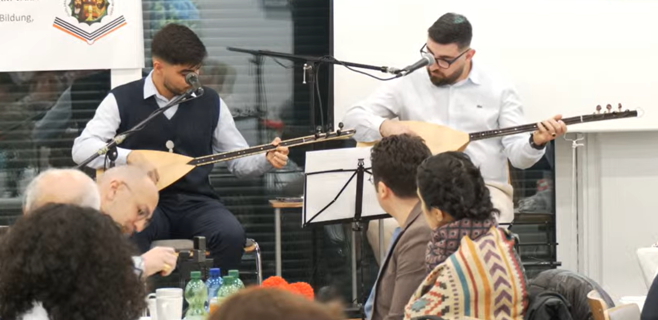Axel Samut und Senan Altun, ein junges Künstlerduo aus Straßburg, haben mit ihrer Bağlama-Musik der Veranstaltung Farbe verliehen.